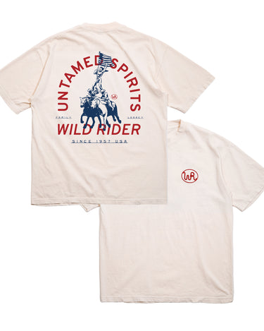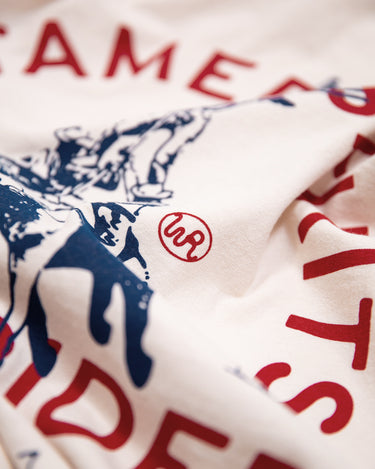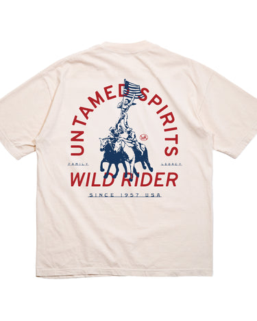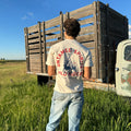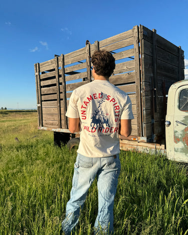 Introducing our exclusive t-shirt, featuring a captivating custom screen-print of a legendary moment: our grandmother Carmel Ellerman trick-riding stunt. This unique design celebrates her spirit and the essence of Western Riding.
