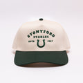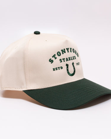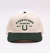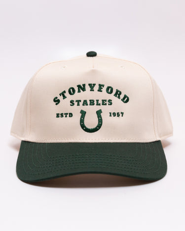 Crafted with a structured, high-profile design, it features bold "Stonyford Stables" embroidery on the front with a horseshoe.